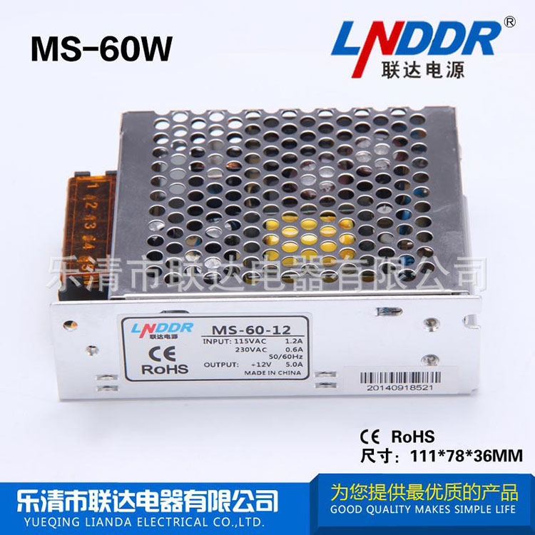 高品質(zhì)MS-60W-12V5A開關(guān)電源 穩(wěn)壓電源 小功率開關(guān)電源 直流電源